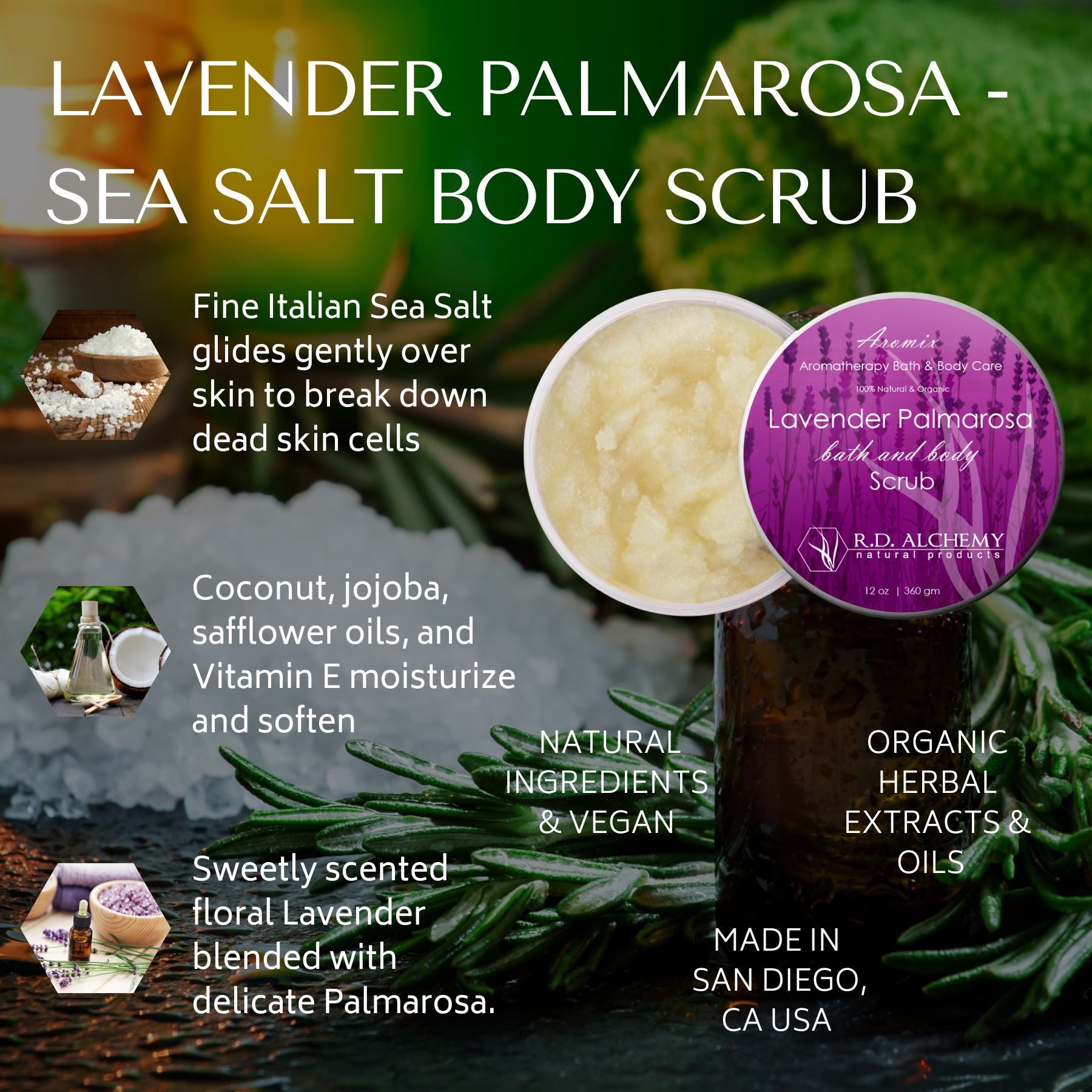Sodium Chloride (Italian Sea Salt), Cocos nucifera (Coconut) Oil*, Carthamus tinctorius (Safflower) Seed Oil*, Stearic Acid (Vegetable), Simmondsia chinensis (Jojoba) Seed Oil*, Lavendula angustifolia (Lavender) Oil*, Cymbopogon martinii (Palmarosa) Oil*, Tocopherol (Vitamin E)*, Rosmarinus officinalis (Rosemary) Leaf Extract*. *Organic