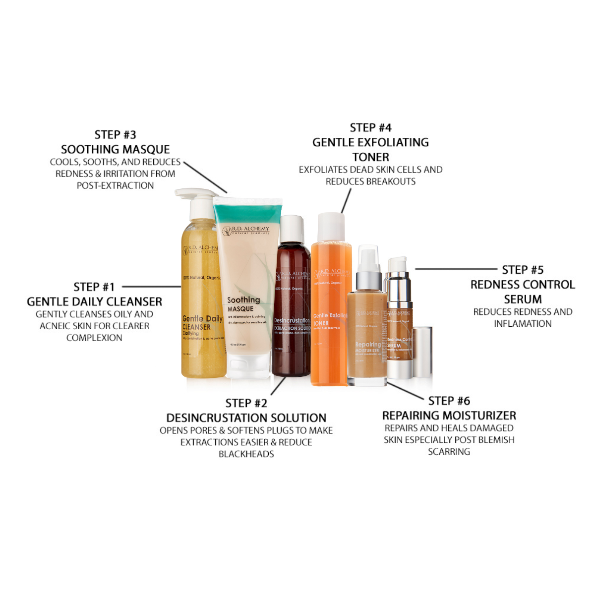 - Complete set cleanses all skin types, exfoliates, opens pores for easier blackhead extraction, soothes redness and inflammation as it lightly moisturizes, heals and repairs damaged skin.