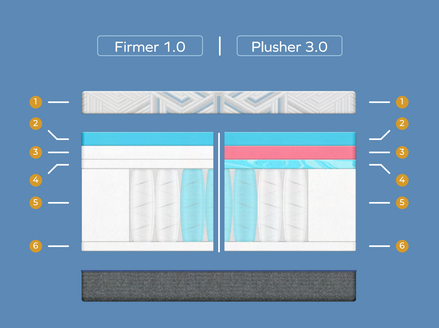 - 1" Flex Support Base Foam: Flex Support Base Foam is often the bottom layer of our mattresses. A mattress must provide the necessary support to keep the spine aligned so the sleeper’s muscles relax instead of tightening to compensate. This high-grade foam completes the bottom of the mattress to provide long-lasting durability and support for the top layers.