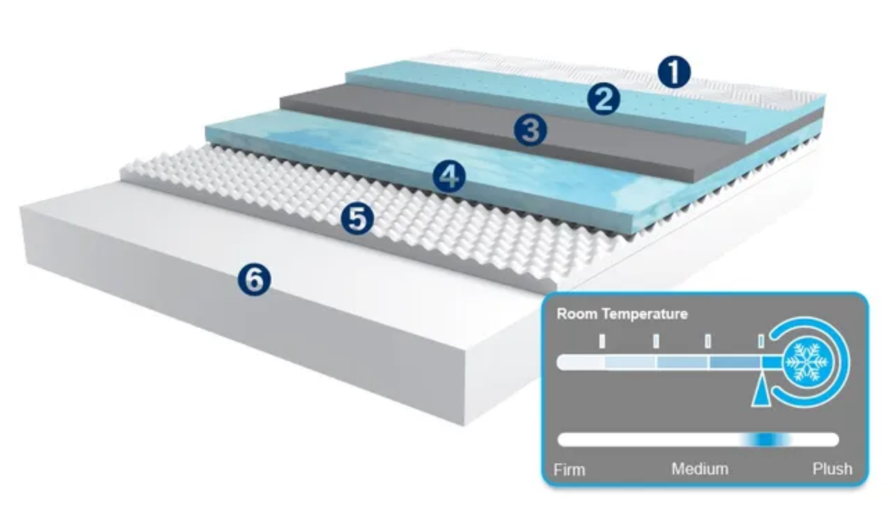 1.5” Gel AeroFusion™ Memory Foam with PCM – NASA-inspired Phase Change Material (PCM) regulates heat, absorbing and releasing it to support the body’s natural temperature cycles.