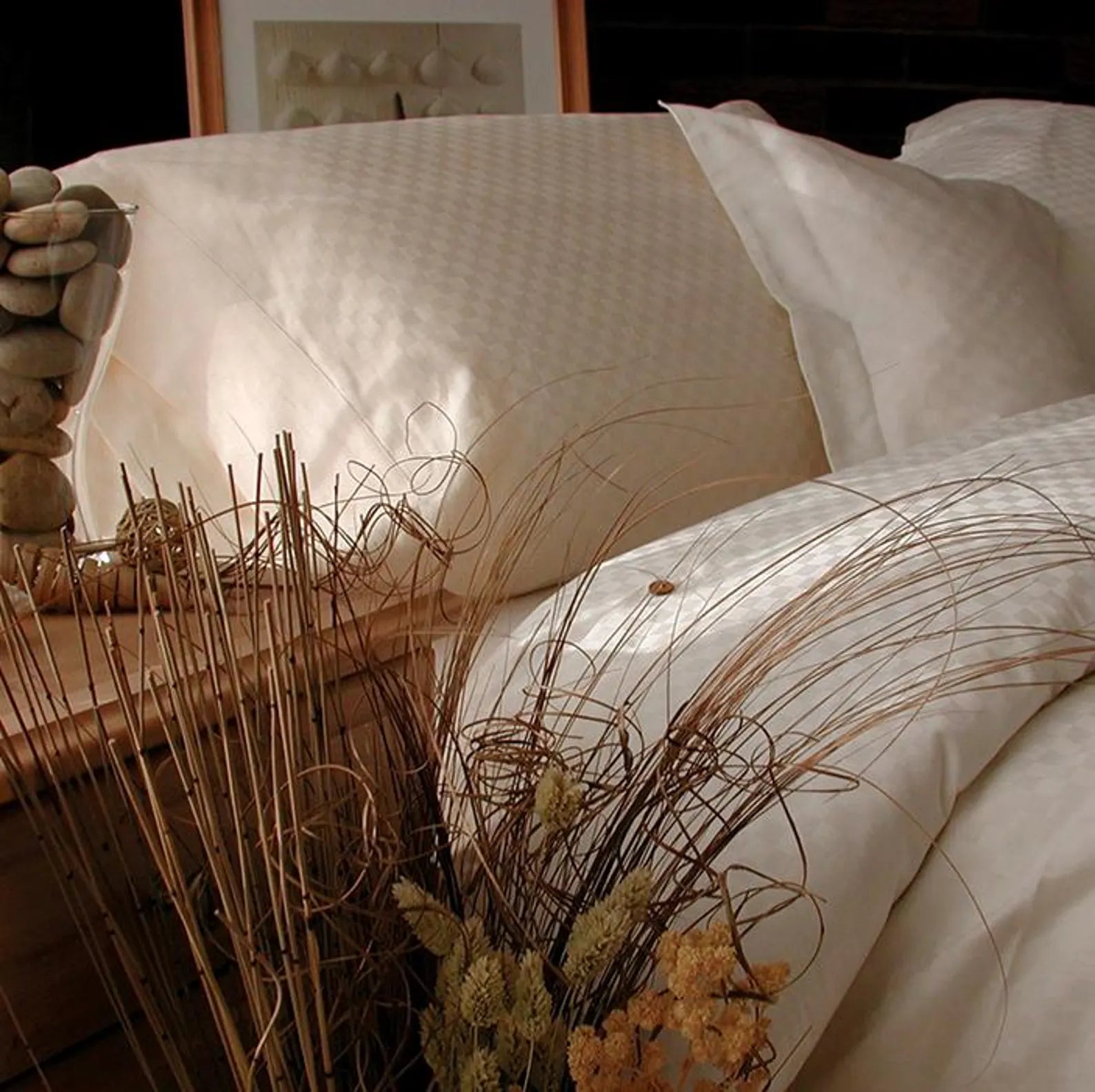 Our organic cotton pillowcases are crafted from luxury 300 thread count sateen for a silky-soft feel and breathable comfort. The subtle woven checker adds understated elegance without dyes or harsh treatments—whitened with peroxide, not bleach.