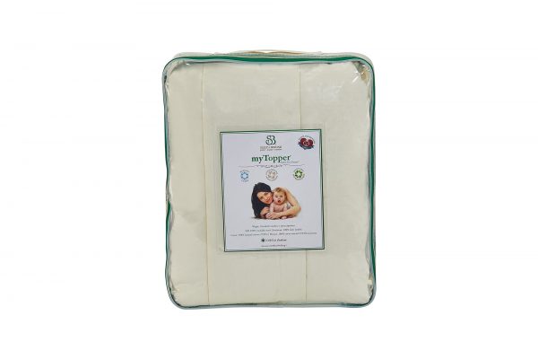 • Use a 100% natural cotton or organic fitted sheet to protect your topper