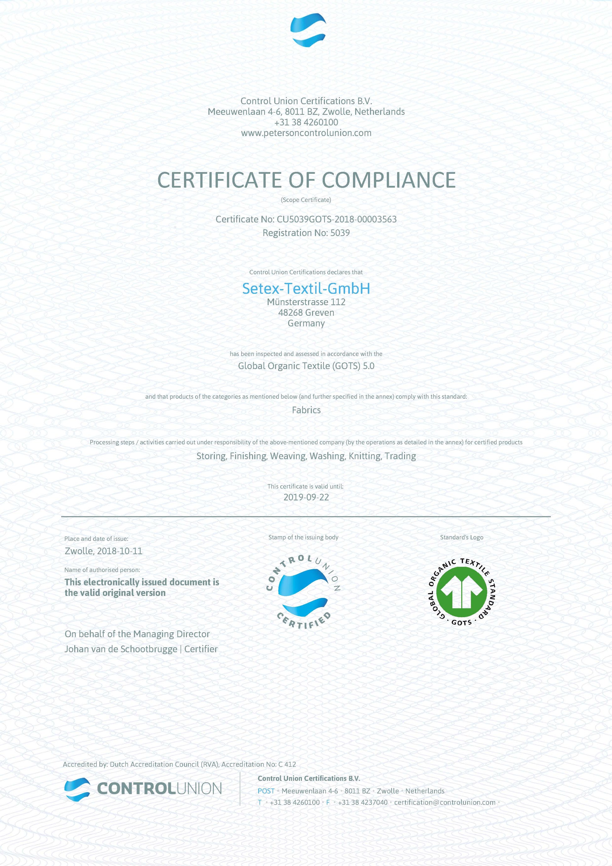 100% GOTS Certified Organic Cotton with a 4.5 micron ultra-tight weave