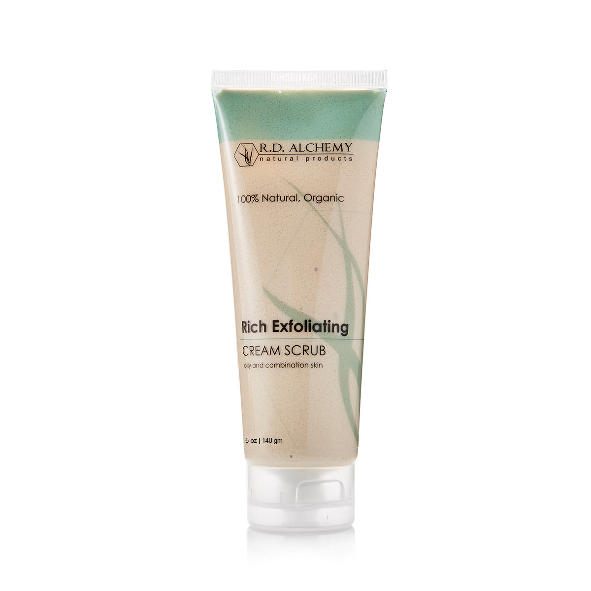 Oily, congested and Acne prone skin is no problem for our triple action Rich Exfoliating Cream Scrub. Clogged, congested pores are detoxified, cleared and healed with biodegradable Jojoba Beads, powerful Papaya and Pumpkin enzymes, Glycolic, Lactic, Citric and Tartaric Acids, clarifying China clay and antioxidant rich herbal extracts. This combination of physical and chemical clarifiers, breakdown, dissolve and purge cellular debris leaving pores decongested, oil absorbed and skin immediately more revitalized and refreshed without drying. Antioxidant rich herbal extracts of Turmeric, Green Tea and more combat inflammation and free radial damage to improve skin tone and texture.Oily skin, Acne sufferers and pigment fighters need to make this your go to scrub 1-3 times a week to help keep your pores clear and build-up minimized. Regular use will help detoxify and renew skin while allowing better penetration of active serums and moisturizers. Combine with an exfoliating mask, toner or serum to enhance exfoliating results and further improve skin tone and texture. Skin will appear more vibrant, soft and smoother and over time, Acne, scars and pigment will fade.