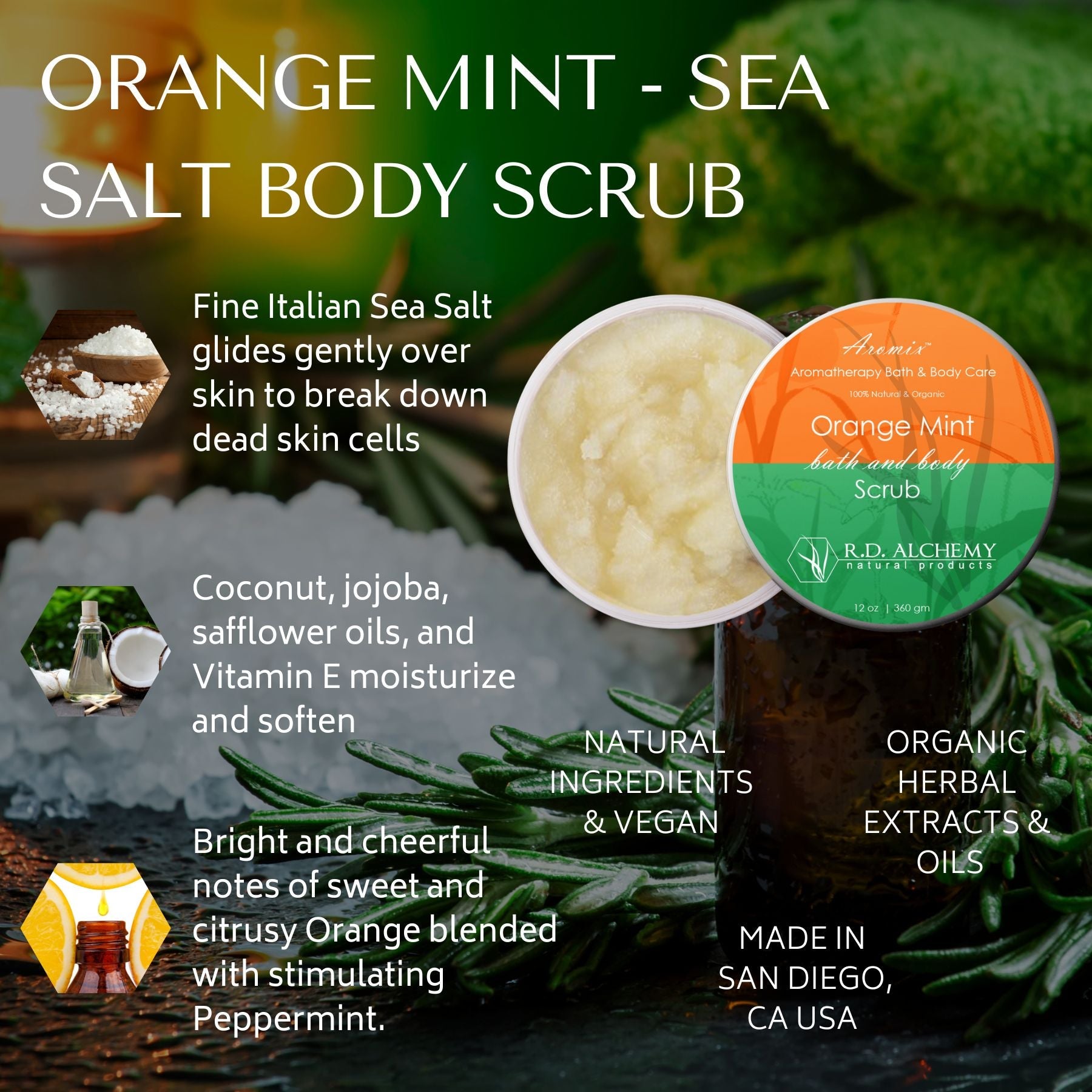 Sodium Chloride (Italian Sea Salt), Cocos nucifera (Coconut) Oil*, Carthamus tinctorius (Safflower) Seed Oil*, Stearic Acid (Vegetable), Simmondsia chinensis (Jojoba) Seed Oil*, Citrus sinensis (Sweet Orange) Oil*, Mentha piperita (Peppermint) Oil*, Tocopherol (Vitamin E)*, Rosmarinus officinalis (Rosemary) Leaf Extract*.