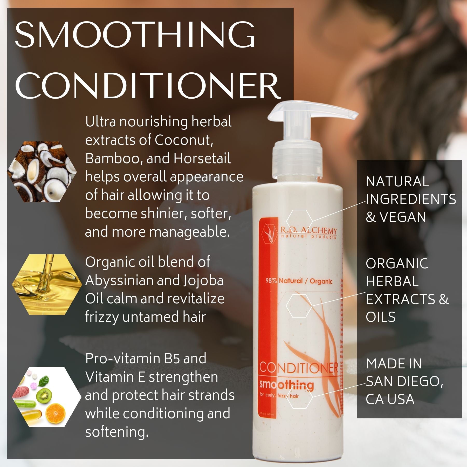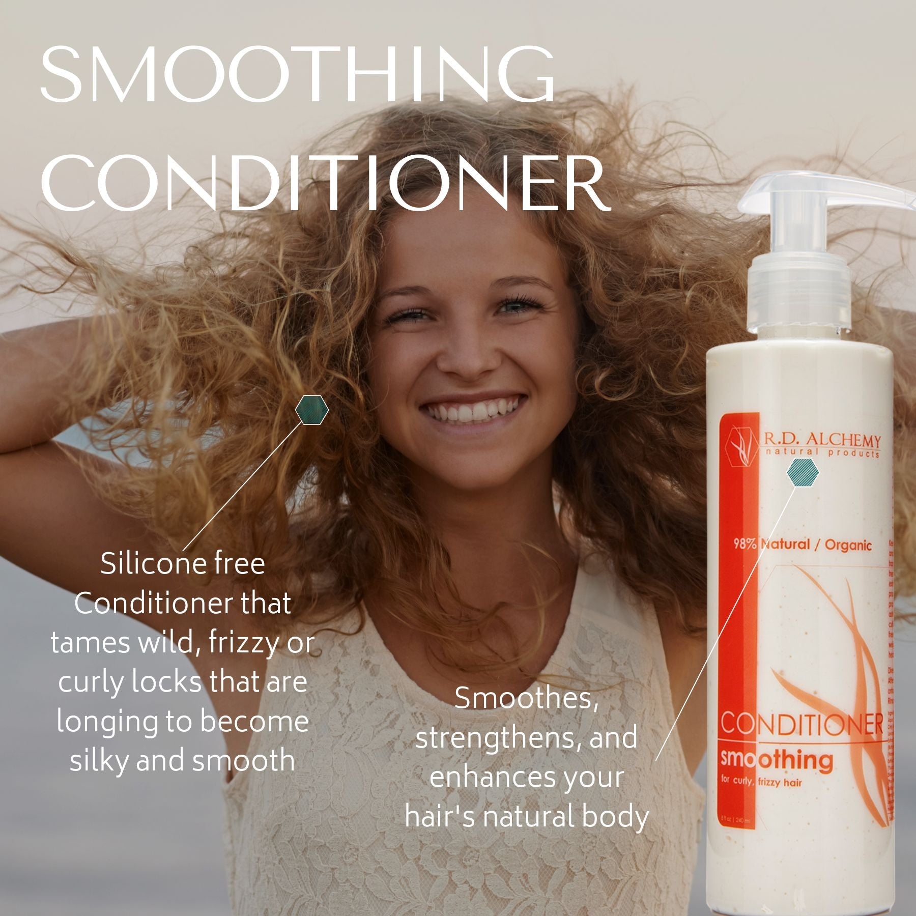 - Smooths and calms unruly, dry, frizzy hair without Silicones.