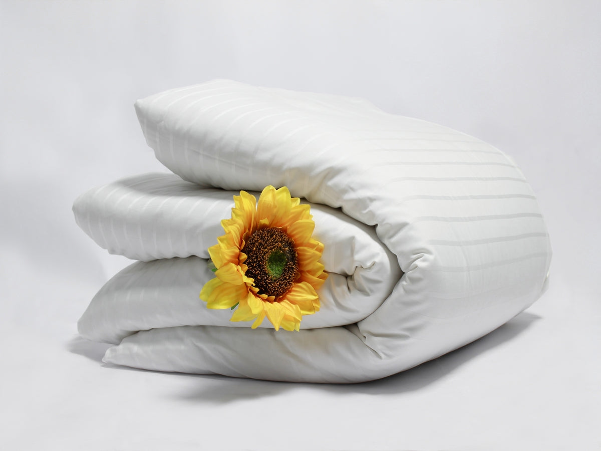 Elevate your bedding with the refined beauty of our Luxury Stripe Organic Cotton Duvet Cover, expertly woven from the finest long-staple GOTS-certified organic cotton. Designed for those who appreciate understated luxury, this silky-smooth duvet cover features a subtle striped pattern that adds elegant luster and texture to any bedroom.